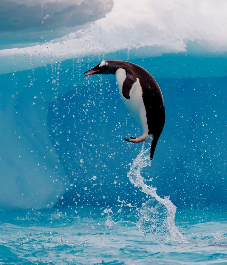 Along the Antarctic Peninsula, we will visit dazzling blue icebergs in shapes that defy the imagination. This stunning landscape hosts several penguin species and the leopard seals that hunt them – framed by a backdrop of endless glaciers and spectacular mountain scenics.